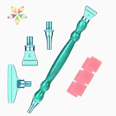 Este set incluye un puntero acrílico grueso con 3 puntas de metal para colocar diamantitos de forma individual o en filas. El set incluye una cajita y 6 cuadrios de cera.