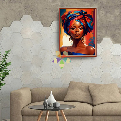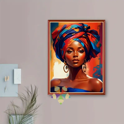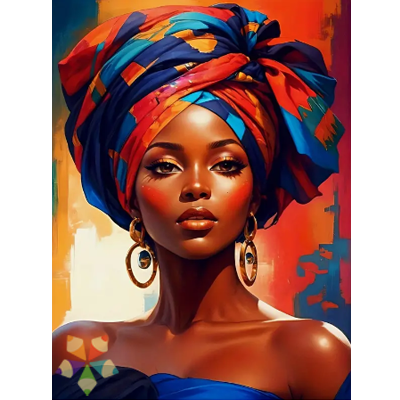 La mirada poderosa de este mujer africana, con su elegante atuendo y presencia intensa, hace que este Diamond Painting transmita muchísima energía femenina!