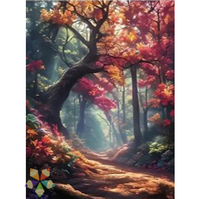 Estos rayos de sol traspasan el denso follaje e iluminan un bellísimo claro en el bosque... Este Diamond Painting ilustra un paisaje que transmite alegría, optismismo y esperanza.