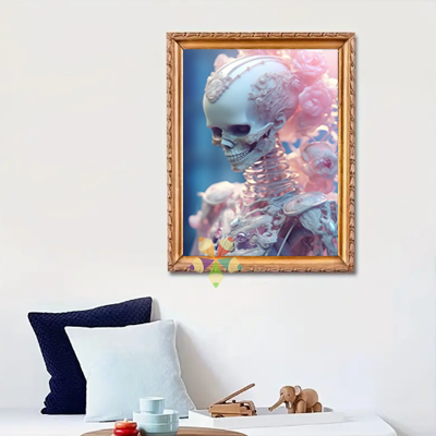 El equeleto es el origen de todo, el semblante más puro y nuclear de la vida, sólo que oculto bajo ropaje. Su apariencia moribunda soporta al cuerpo mientras vive, le da fuerza para mantenerse en pie y hace posible la existencia. Iguala la raza, la vuelve homogénea y demuestra la igualdad en el género, la cualidad y magia de la creación misma de tener un mismo molde para millares de personas distintas. Es la materialización extrema del humano sin ocultar nada, sin secretos ni demandas de la sociedad que atraviesa.
