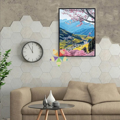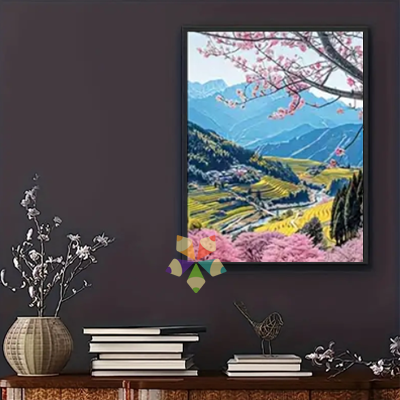 La vista se pierde en la profundidad de este bellísimo paisaje, entre montañas, flores y terrazas, la belleza de la naturaleza que florece con la llegada de la primavera y el brillo de este Diamond Painting.