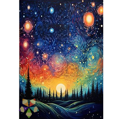 Este lienzo de un paisaje nocturno, está inspirado en "La Noche Estrellada" del pintor posimpresionista neerlandés Vincent van Gogh. La belleza de sus tonos y formas, de su luz y oscuridad lo hace una obra de arte con la cual embellecerá cualquier espacio de su hogar!