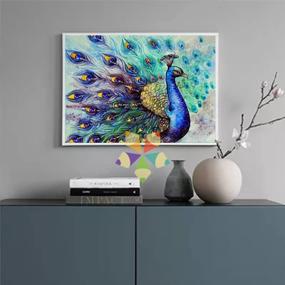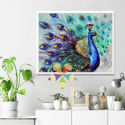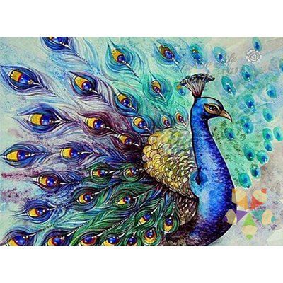 En casi todas las culturas, el pavoreal es un símbolo solar relacionado con la belleza, la gloria, la inmortalidad y la sabiduría. Toda su majestuosidad destella en este lienzo de Diamond Painting.
