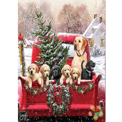 La Navidad es una temporada que celebra a la familia y el esíritu de la unión familiar, que incluye por supuesto a nuestros "peluditos"... Celebramos con ellos en este hermosísimo cuadro en el que traen a casa el arbolito navideño!