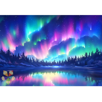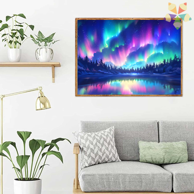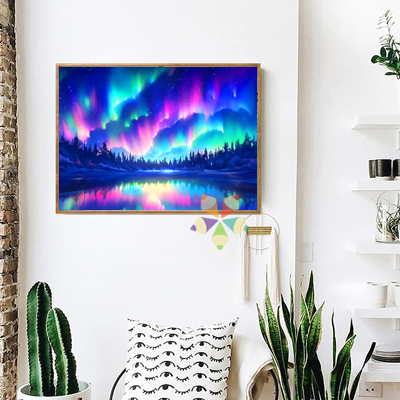 Un mágico espectáculo de la naturaleza, las auroras boreales nos deleitan con sus colores y formas. Este lienzo resplandecerá con todo el brillo de los diamond painting y toda su magia cobrará vida!