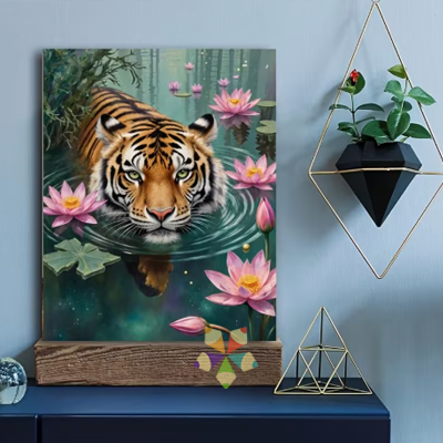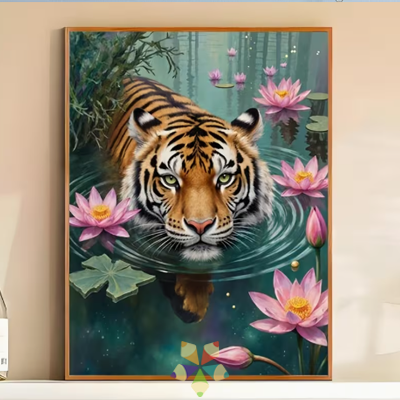 Este Paint by Numbers combina dos elementos con grandes significados para las culturas orientales. El tigre de Bengala es el animal nacional de India y Bangladesh, representa la fuerza, el coraje, la majestuosidad y la autoridad. Es un símbolo de poder ilimitado en la mitología hindú, y encarna la agilidad, la independencia y el equilibrio de los ecosistemas. La flor de Loto, para los budistas representaba la pureza de la mente, el habla y el cuerpo en medio de las aguas sucias de los deseos corporales y el apego a lo terrenal.